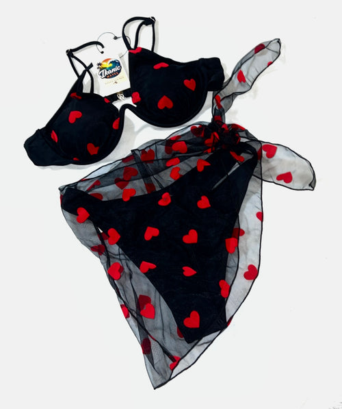 Heartbreaker 3 piece bikini with sarong